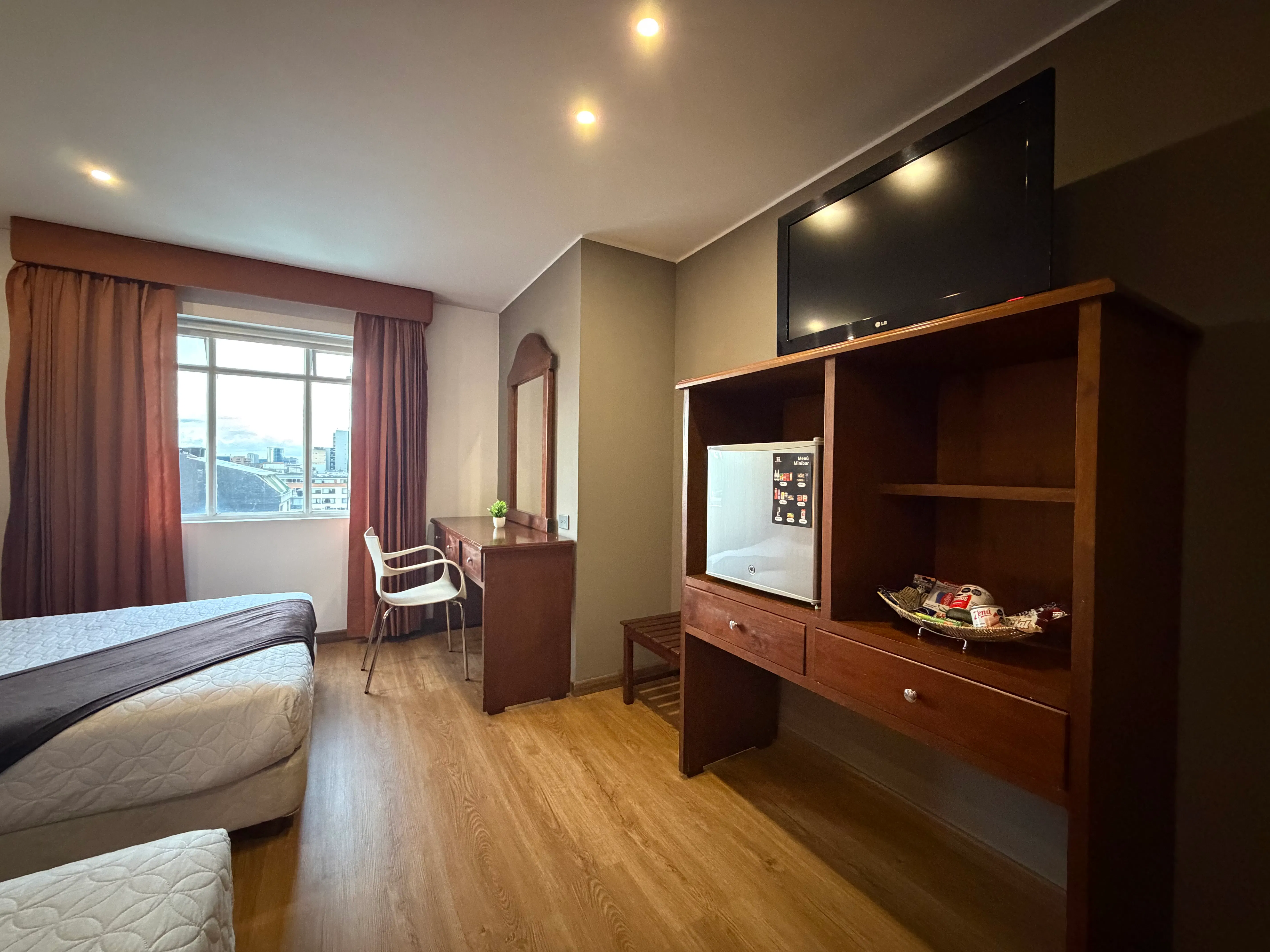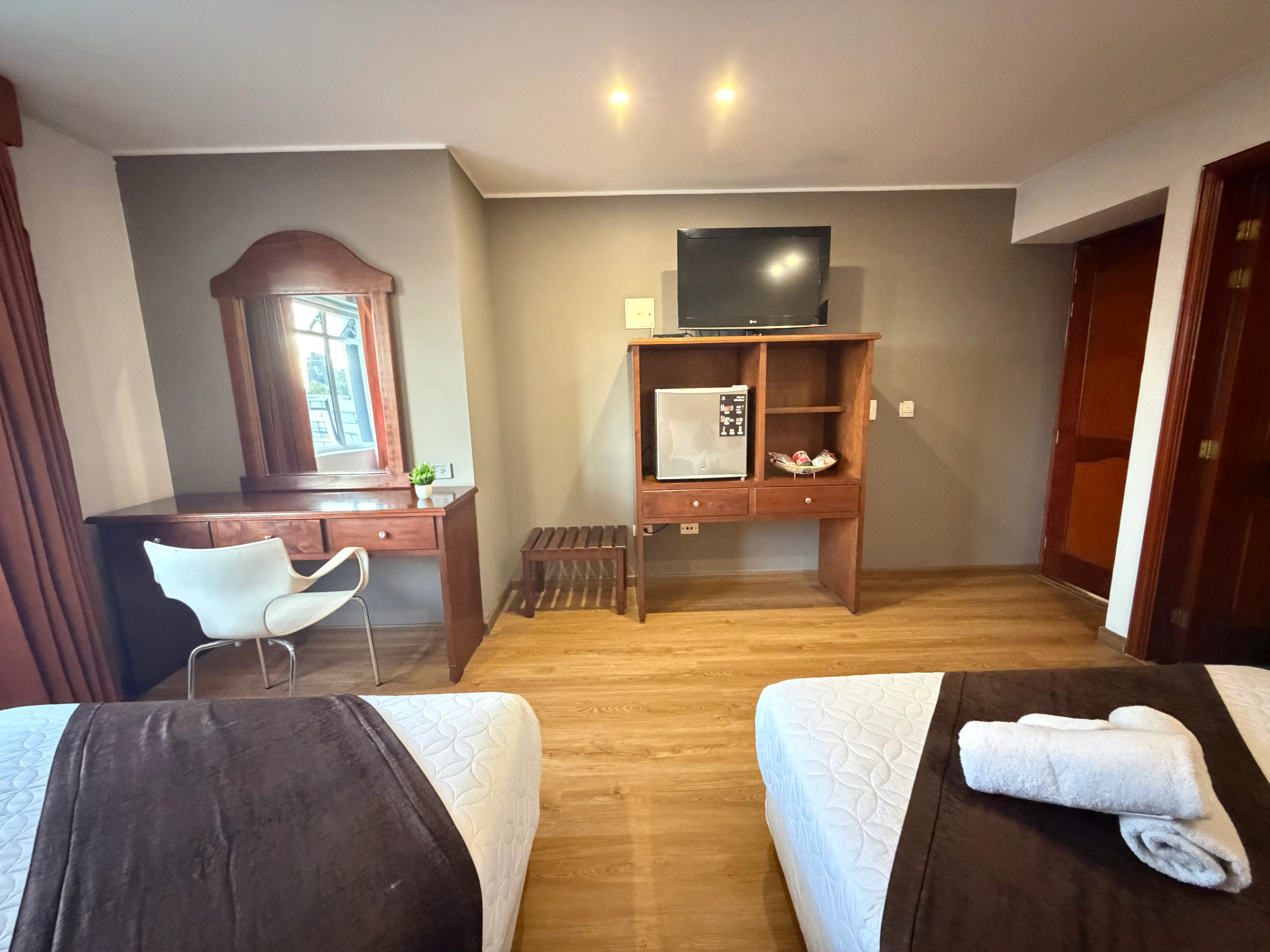 Nuestra Habitación Superior Twin es la definición de versatilidad con un toque de distinción. Diseñada para quienes viajan acompañados y no quieren comprometer su descanso, cuenta con una cama matrimonial y una cama sencilla, ofreciendo el espacio perfecto para hasta tres personas en un ambiente sofisticado.