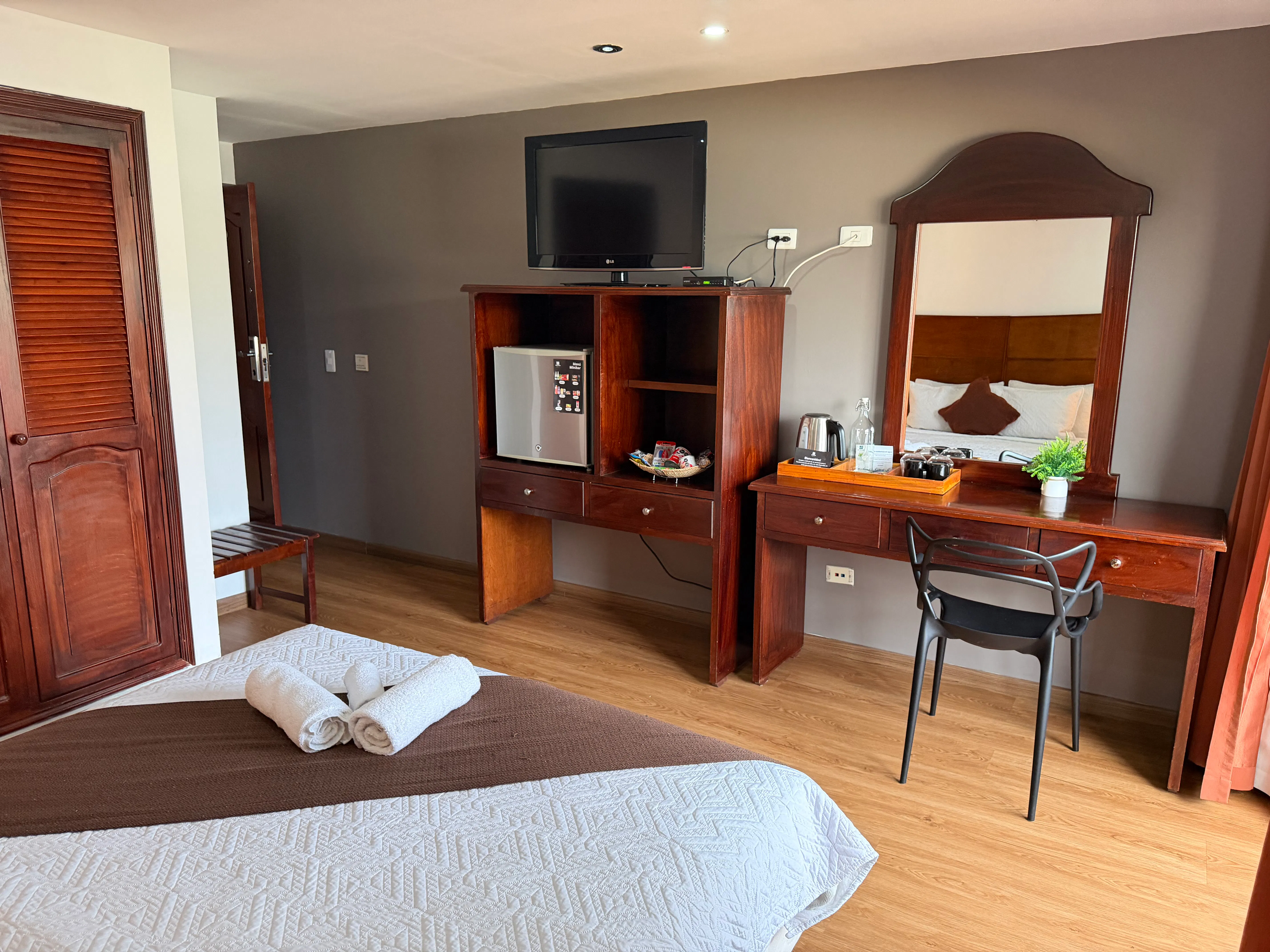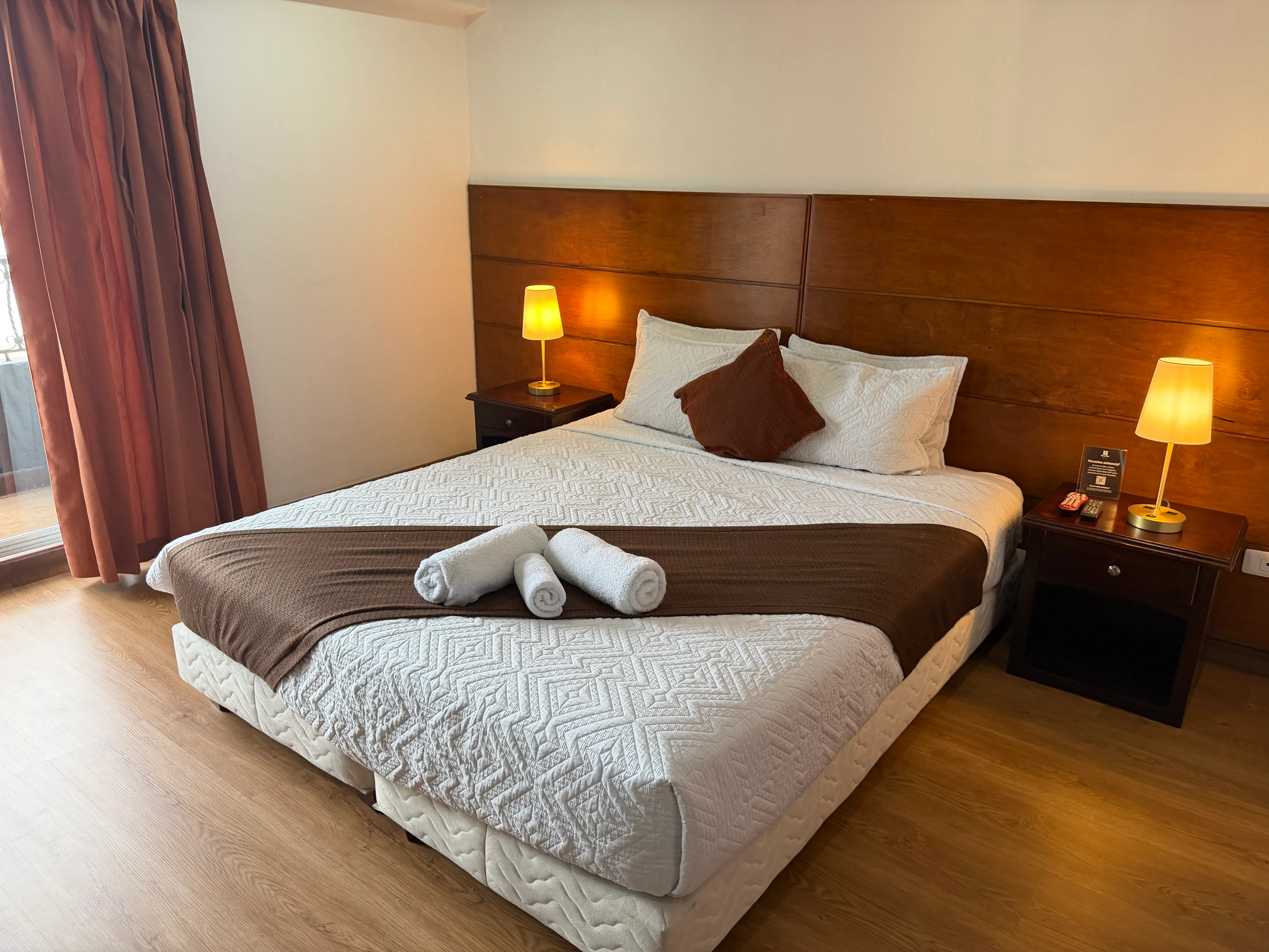 Elevate your stay in our Superior Room. This space has been designed for those seeking extra comfort and sophistication during their stay. Enjoy the freedom to brew premium coffee at your own private coffee station before starting your day. With furnishings including a work desk, spacious closet, and luggage rack, every detail is designed for impeccable organization. Relax with your favorite beverage from the minibar while enjoying the plasma TV in an environment perfectly illuminated by our designer lamps.